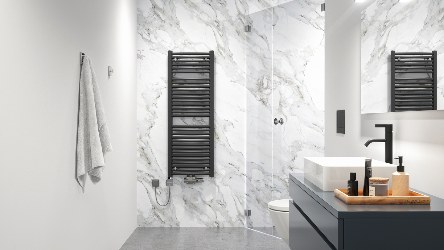 Kombinovaný žebřík do koupelny je napojen na centrální otopnou soustavu a zároveň vybaven elektrickou topnou tyčí, kterou lze zapínat dle potřeby. V chladnějších měsících funguje jako klasický vodní radiátor. Mimo topnou sezónu jednoduše zapnete topnou tyč – bez nutnosti spouštět kotel.
