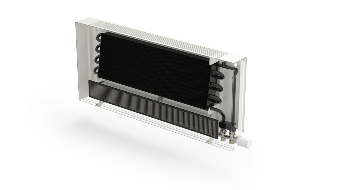 Nástěnný konvektor s ventilátorem a dotykovým LED termostatem, určený pro nízkoteplotní vytápění. Vhodný pro novostavby, rodinné domy, administrativní objekty i rekonstrukce.