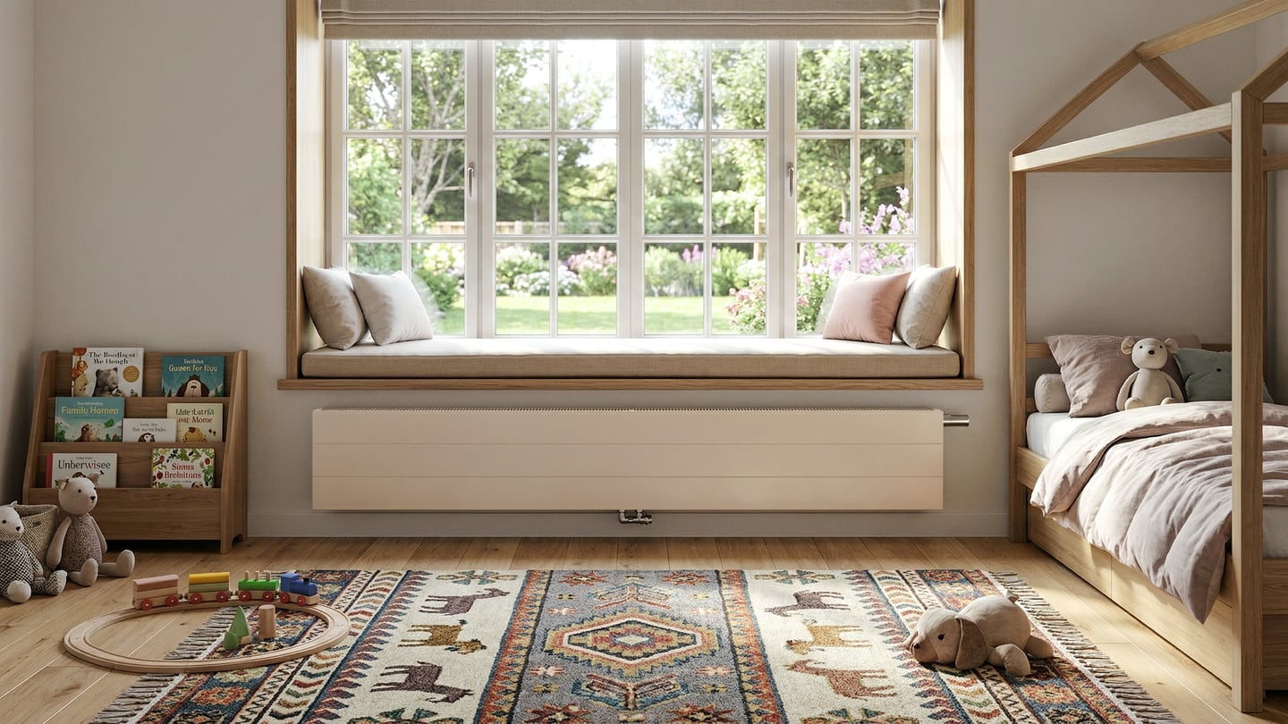 V místnostech s nízkými parapety nebo pod šikmými stropy v podkrovních prostorách není místo pro běžné otopné těleso. Nízký radiátor je v těchto případech jasná volba – zachovává přirozený proud teplého vzduchu a zároveň nebrání ve výhledu ani nepůsobí rušivě v interiéru.