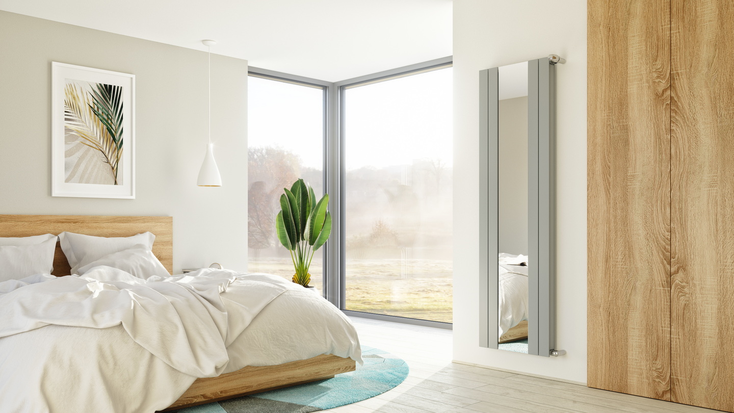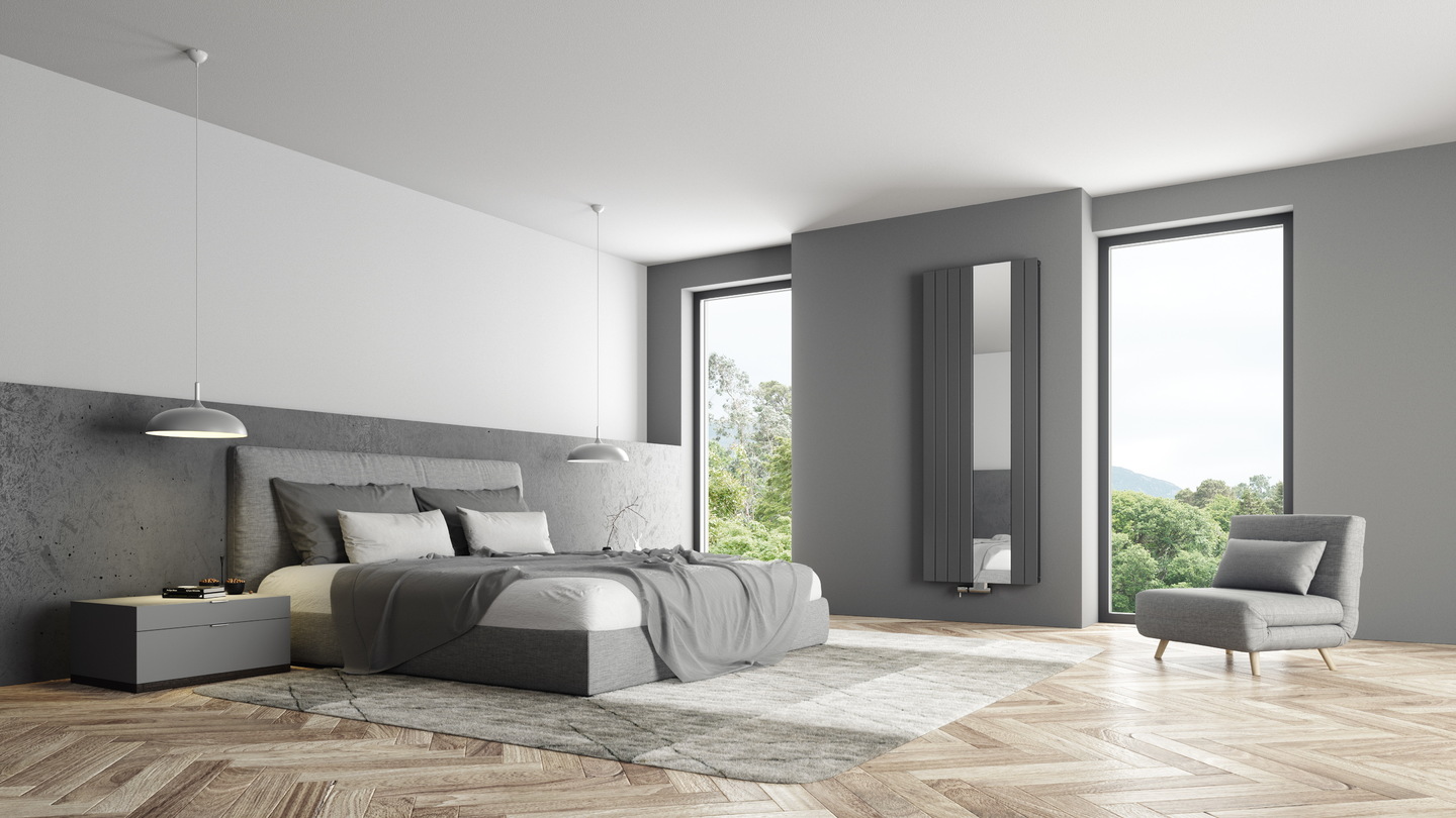 Verze s plochým zrcadlovým panelem. Luxusní, nenápadný a zároveň funkční prvek – radiátor a zrcadlo v jednom.
